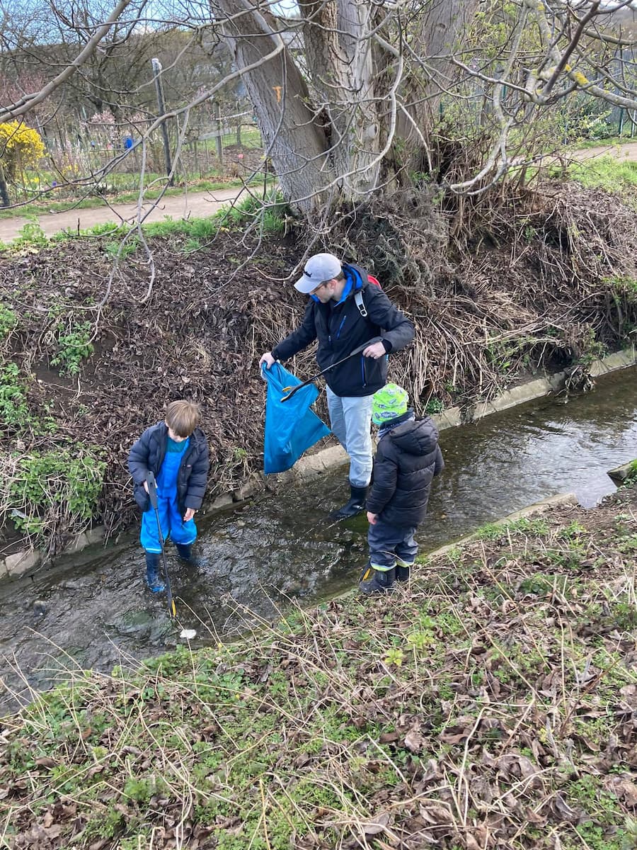 Wir haben an einem Nachmittag eine Nachhaltigkeitsrallye veranstaltet, bei der es unter anderem die Aufgabe der Familien war, 20 Teile Müll zu sammeln. Hierzu war eine Familie am Mülheimer Bach unterwegs und musste feststellen, dass dort sehr viel Müll liegt. Da kam die Idee auf, zu einem Cleanup über Facebook aufzurufen und zeitlich verteilt in den einzelnen Familien diesen Müll zu sammeln. Hierauf war die Resonanz im Vorfeld so groß, dass auch Familien, die keine Vereinsmitglieder sind, Müll gesammelt haben.